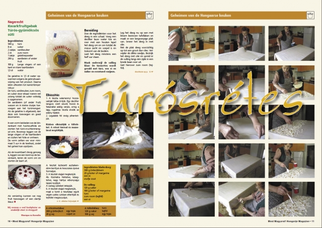 Welkom · Üdvözöljük!Hongaarse keuken · receptek Túrós rétes Klik op de afbeelding voor de leesbare versie als pdf.Túrós rétesUitgevoerd door Lutar Krisztina, Lendava/LendvaGepubliceerd in Most Magyarul!nummer 47, 2009.Foto's: Edwin van SchieWelkom · Üdvözöljük!Hongaarse keuken · receptek Túrós rétes